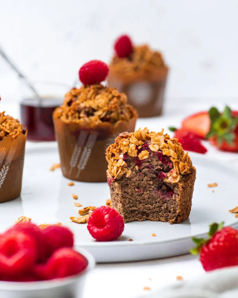 Gluten-free Vegan Banana Raspberry Streusel Muffins