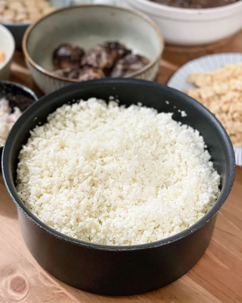 Glutinous rice (sticky rice) is the main ingredient for rice dumplings. So in this keto rice dumpling recipe we focus on how to imitate the taste and texture of glutinous rice by using riced cauliflower and psyllium husk powder. I promise, this sticky cauliflower rice closely resembles real glutinous rice!