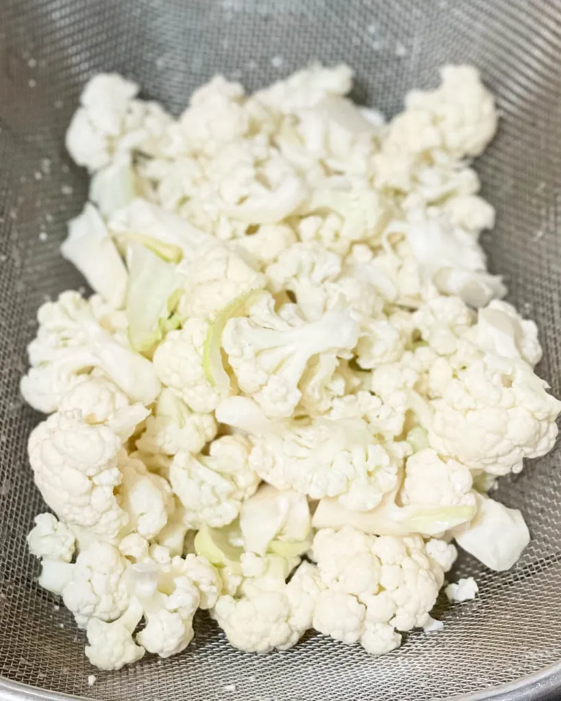 Cut the cauliflowers into small florets. Chop the stems and leaves into smaller pieces. You may discard them if you do not want them.
